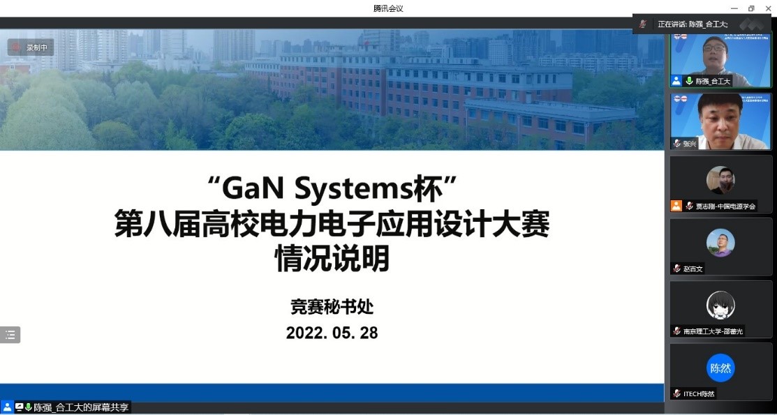 承办的“GaN Systems杯第八届高校电力电子应用设计大赛“启动仪式暨参赛辅导说明会成功线上举行。