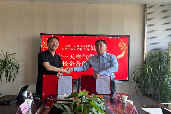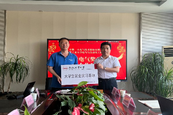 赴安徽一天电气技术股份有限公司开展奖学金签约暨就业实习基地授牌仪式,学院副院长黄海宏、党委副书记兼纪委书记李丽鹏、一天电气董事长芮骏、总经理黄汉良、副总经理余银钢、人力资源总监陈友竹等参加仪式。