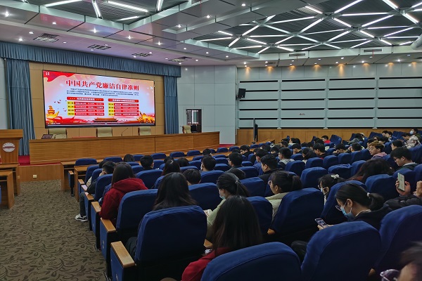在学术会议中心大报告厅组织第66期预备党员班学员代表和全院学生党支部纪检委员进行廉洁警示教育研讨活动。