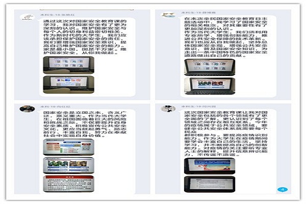 积极组织学生收看了教育部中国大学生在线、易班、国家开放大学网站发布的国家安全教育公开课并在学生中引起了强烈反响。