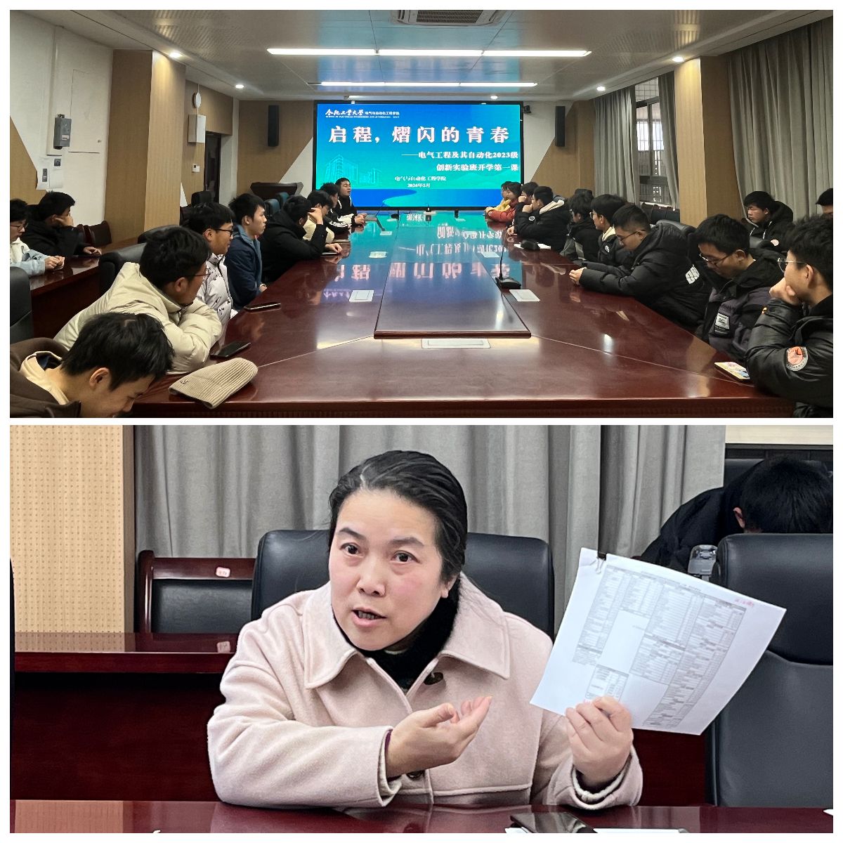 学院本科生教务员林逸榕结合专业课程特色,讲解了电气工程及其自动化创新班专业的课程学分细则,针对跨学院课程选课、相关课程替换、学生主要困惑进行了详细的解答。学院相关负责老师围绕学院文化、校规校纪、网络素养、消防安全等主题展开,从环境适应、自我认知、心态调节、能力塑造等多个角度回应了学生疑虑,鼓励学生继续保持信仰、信心的坚守和无私、无畏的姿态,在班级中积极主动,敢闯,敢做,抓住每一次机会,开辟专属于青春的绚彩未来。会议结束后,在场学生与各位老师就当前的困惑和未来规划等问题开展了交流。