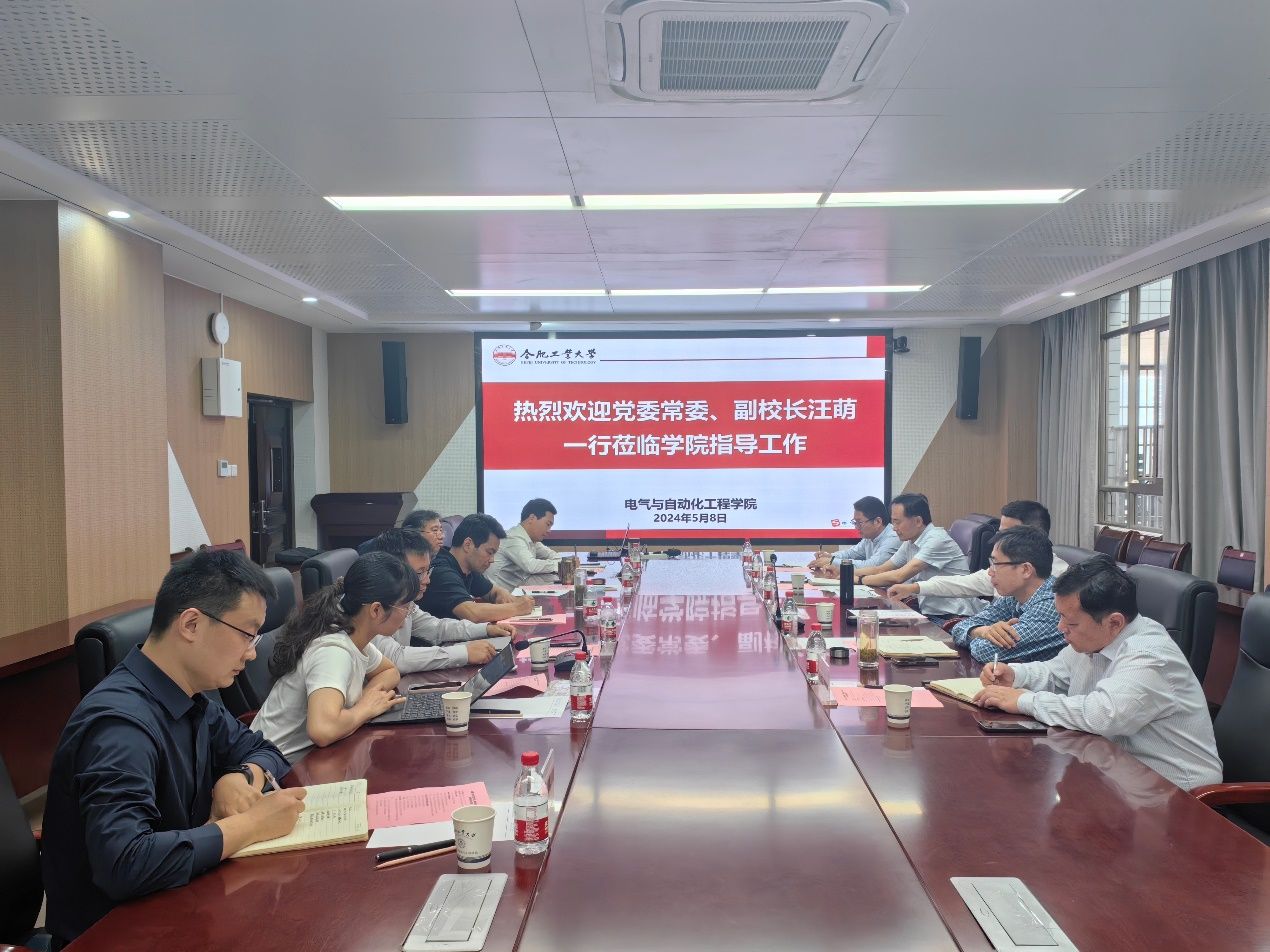 会上,向念文代表学院对副校长汪萌一行人来访表示热烈欢迎,并从师资队伍、学科平台建设、科研工作、及人才培养等多个方面详细介绍了学院学科发展现状。对标学科评估指标,详细剖析了电气工程学科存在的差距和不足,结合新一轮学科建设目标和“双一流”建设要求,提出了具体的分项目标和相应的建设举措。向念文表示,学校高度重视一流学科的培育工作,学院既感受到期盼又倍感压力。学院将紧跟学校的步伐,抓住当前机遇,聚焦学科发展,迎接挑战,凝心聚力,全力推进电气工程一流学科建设。何岳颀作了补充发言,对学科发展过程中的痛点、难点、堵点,提出了建议和意见。