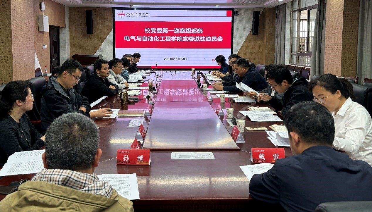 巡察组副组长年永琪、孟凡东及巡察组全体成员,电气学院领导班子成员、各系(部)负责人、党支部书记、科级干部等参加会议。