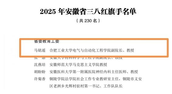 马铭遥教授光荣上榜,获得安徽省三八红旗手称号!