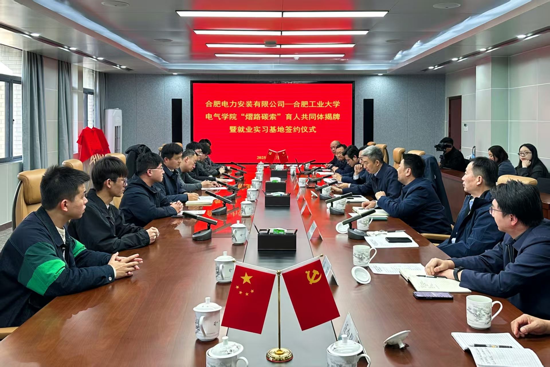 师生赴合肥电力安装有限公司参观交流,并举行“熠路碳索”育人共同体和大学生就业实习基地签约揭牌仪式。