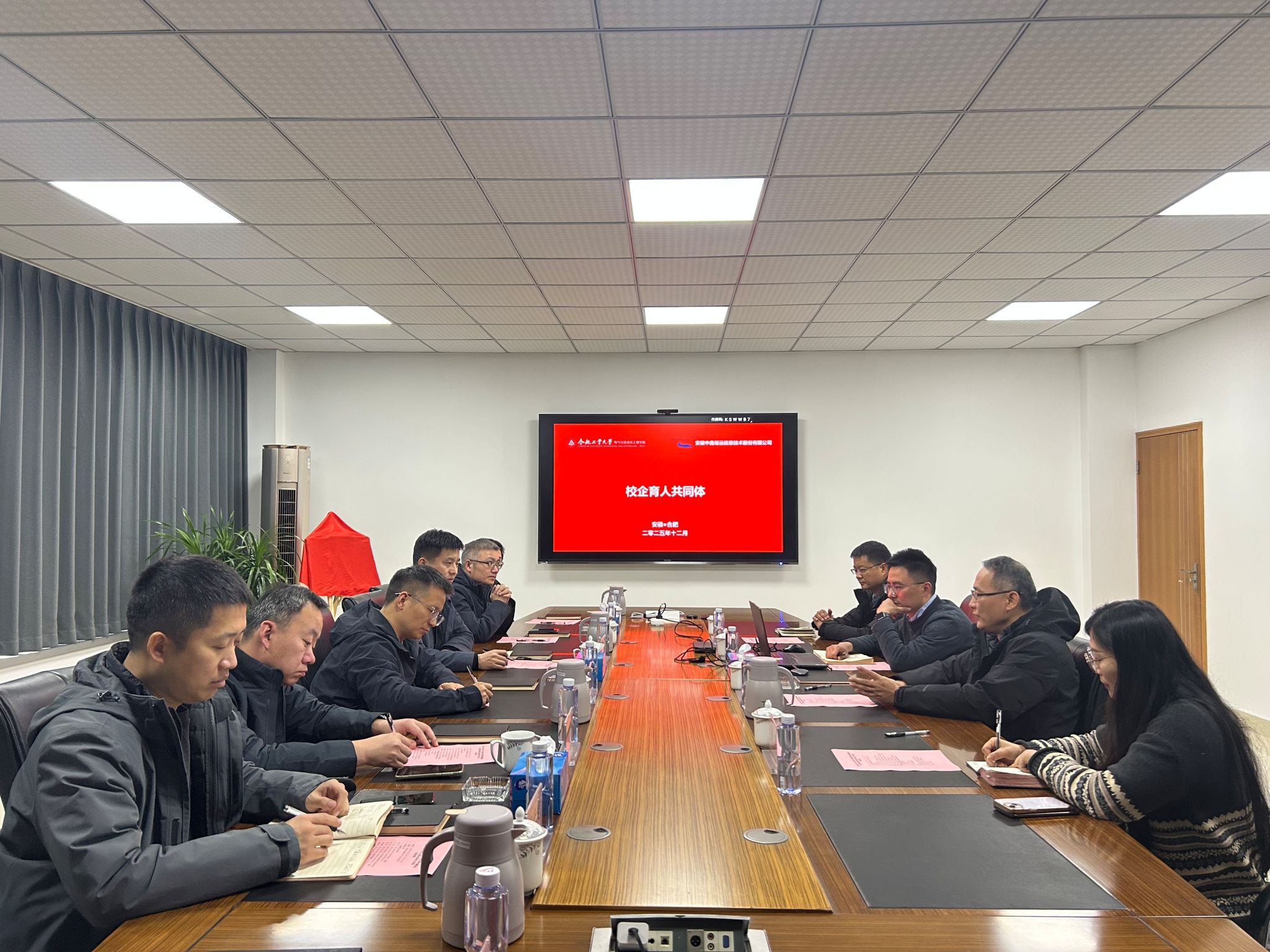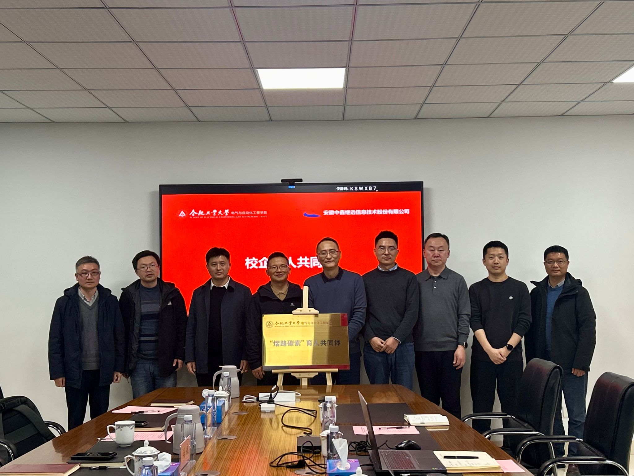 赴安徽中鑫继远信息技术股份有限公司参观交流,并举行“熠路碳索”育人共同体揭牌仪式,公司、学院相关负责同志及部分骨干教师代表参会。