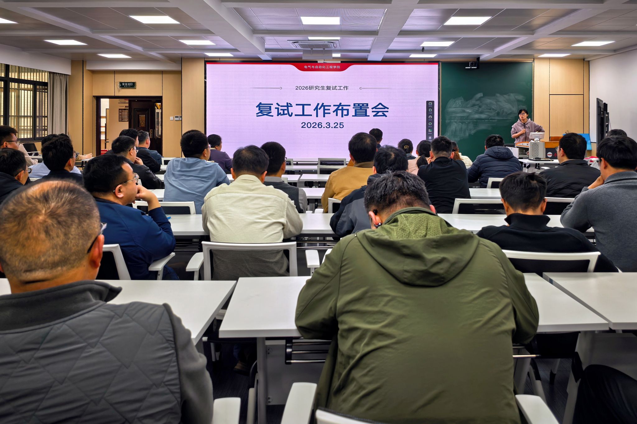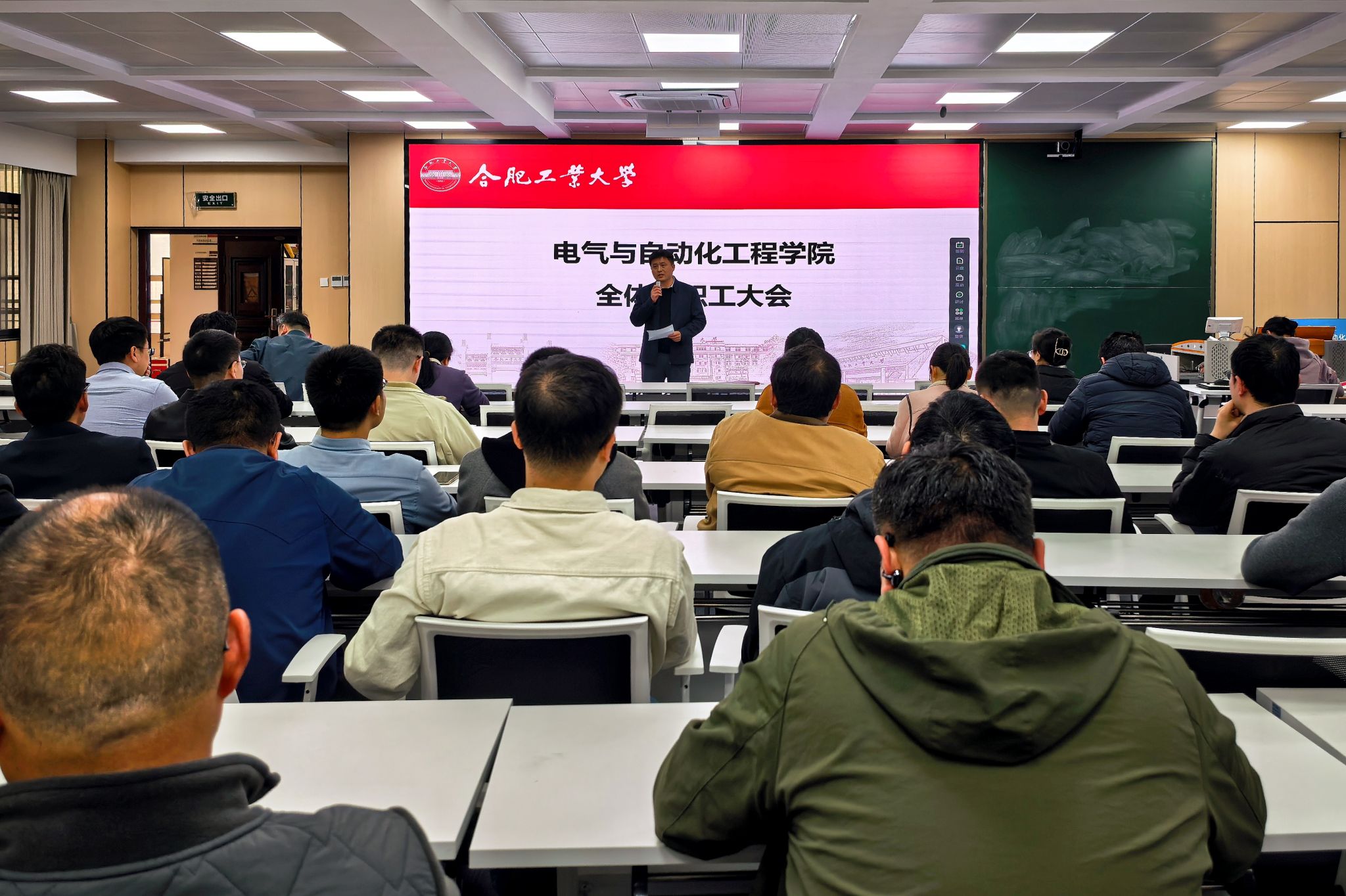 2026年3月25日下午,学院在逸夫楼1005会议室召开全院教职工大会。会议由党委书记冯航主持,学院领导班子成员及全体教职工参加。