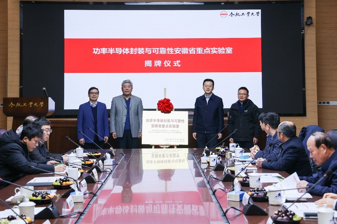 于祥成在致辞中向与会专家表示热烈欢迎,对各位专家长期以来给予p站 的关心和支持表示感谢,并介绍了学校优势学科和最新办学成果,希望专家们一如既往地关心支持p站 的建设发展,不断深化与学校的交流合作,共享新思路新经验新方案,推动相关学科科研平台更好的发展。随后于祥成、华北电力大学崔翔教授、“功率半导体封装与可靠性安徽省重点实验室”实验室主任丁立健教授共同为“功率半导体封装与可靠性安徽省重点实验室”揭牌。