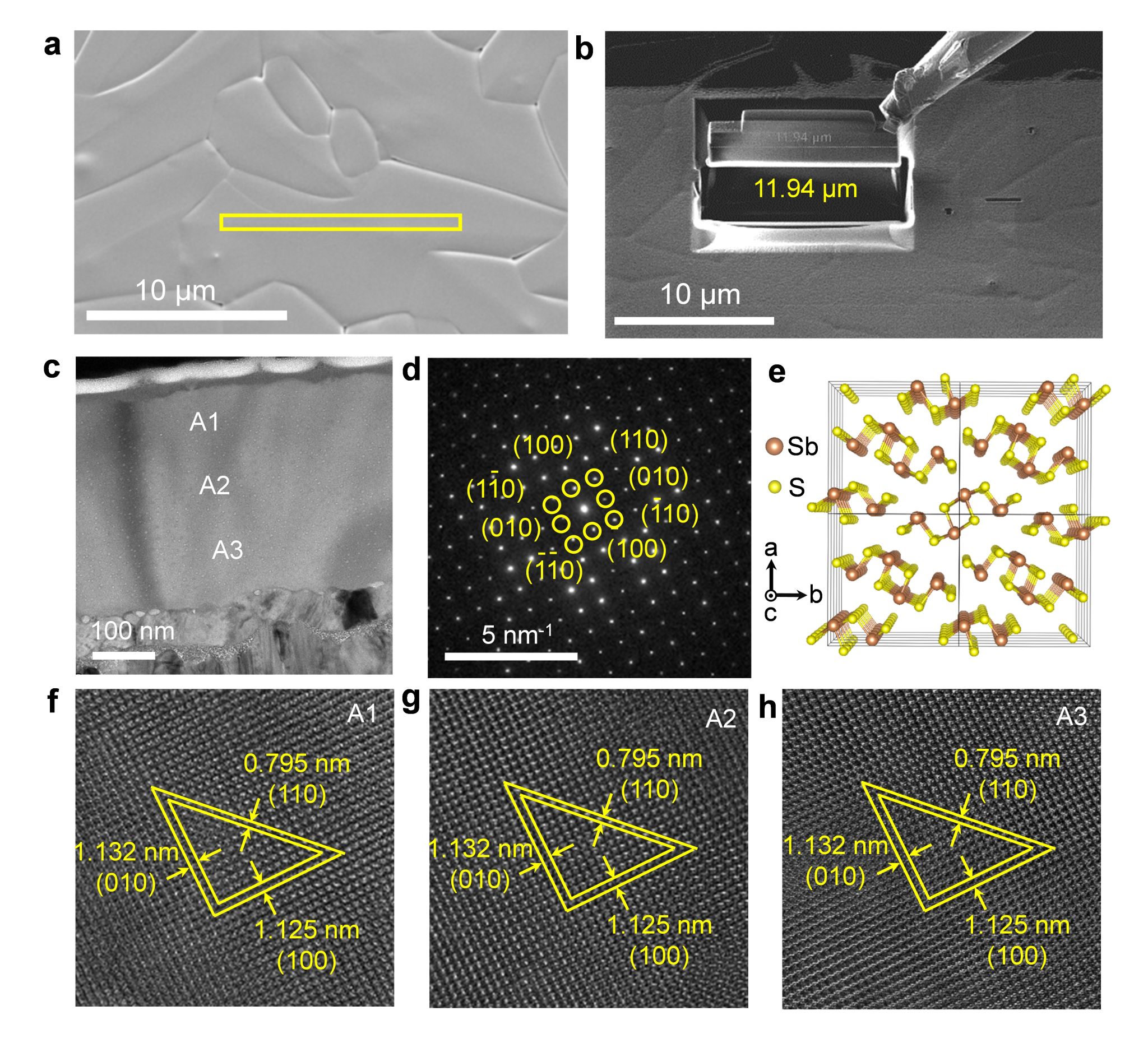 图2 超低晶界密度硫化锑薄膜的聚焦离子束-透射电子显微镜(FIB-TEM)表征