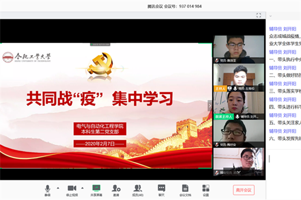 本科生党支部以视频会议形式召开“共同战疫”专题集中学习,组织学习省委、省教育工委、学校党委和学院党委关于全体党员做好新型冠状病毒感染肺炎疫情防控工作的文件精神。全体本科生学生党员参加学习。