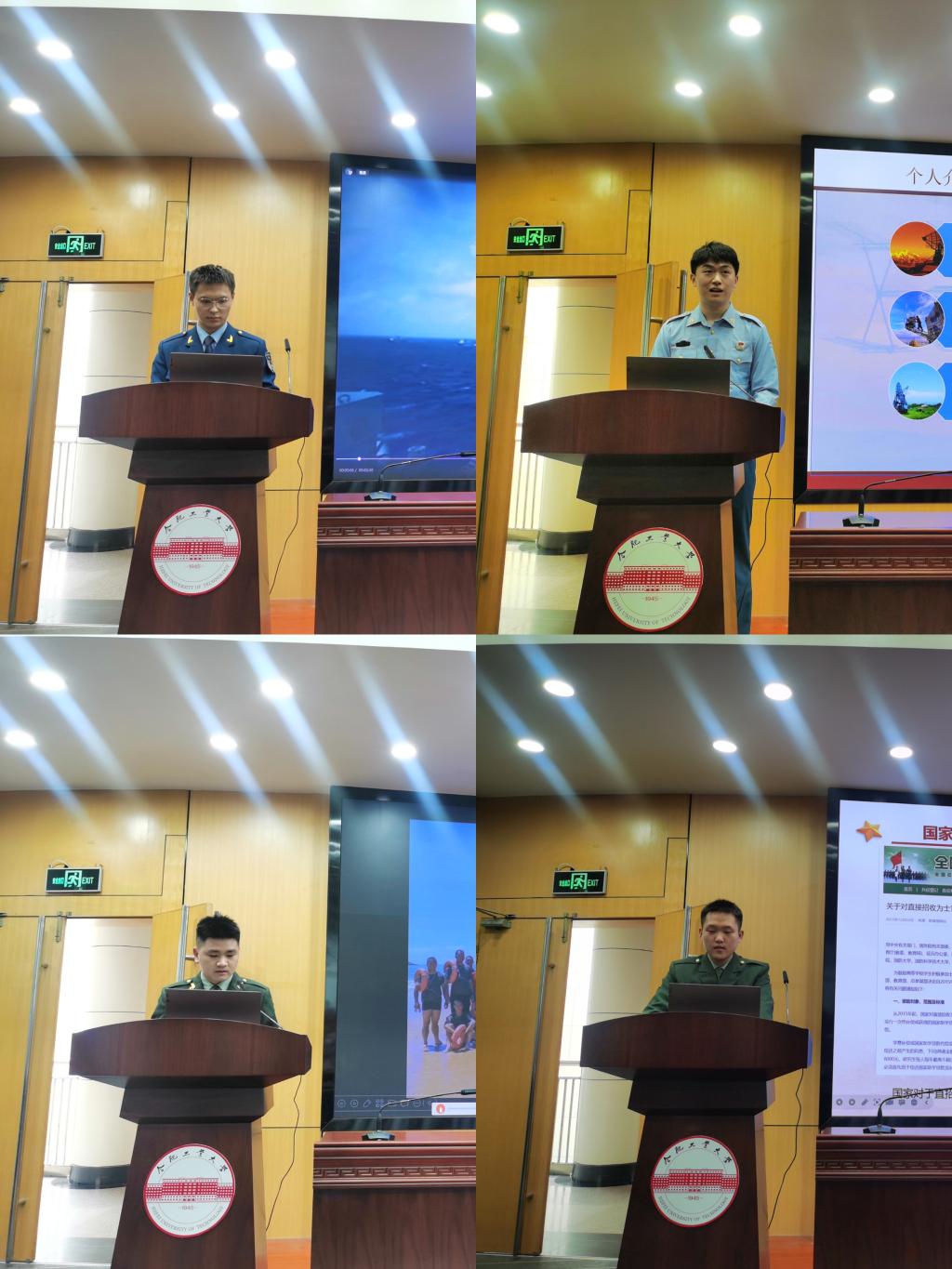 活动首先邀请校党委学生工作部(处)征兵与国防教育中心李之涵老师介绍征兵工作,他结合自身从军经历,从志愿填报、入伍发展路线、入伍基本条件、义务兵入伍流程、入伍优待政策和军官文职区别六个方面介绍了2023年学校征兵工作,详细解读了大学生应征期间、服兵役期间和退役后的各项优抚政策,列举了往年征兵案例,讲述了大学生应征入伍的优势和注意事项,为学生参军入伍提供了系统指导和宝贵建议,同时鼓励青年学子一腔热血投身国防,淬炼精彩人生,不负时代韶华,在实现“强军梦”、“中国梦”的伟大征程中展现工大学子的青春风采。随后李之涵与齐梦月为杨行行等四名退役大学生士兵颁发学院强军宣讲团讲师聘书。四位同学依此分享了自己的入伍经历。杨行行通过一组沙画回忆了自己的入伍经历,介绍了入伍初心和进入军营后的许无数个“第一次”,以及一个又一个的成长转变,他表示参军入伍是最骄傲的经历,也是人生最宝贵的财富。靳博彦从入伍经历、成长收获等方面分享了自己入伍参军的心路历程和军营生活的“酸甜苦辣”。姜智强以“少年不惧岁月长,彼方尚有荣光在”为题介绍了参军期间发挥自身优势,投身科技创新,成功研发“智能眼镜”的先进事迹,激励同学们深刻领会参军入伍的价值意义,树立强军强国的远大志向。石祥介绍了自己在边远地区参军入伍的经历,分享了自己的成长感悟,表达了对军队生活的热爱和不舍。交流环节,同学们积极踊跃发言,咨询了更多入伍政策,李之涵老师对学生们的问题进行了耐心细致的解答。
