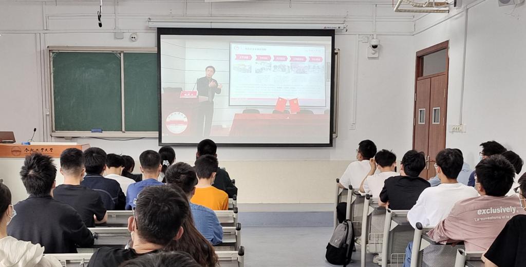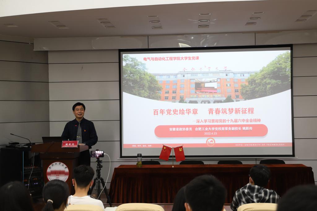 于斛兵报告厅组织开展党的十九届六中全会精神学习宣讲活动,安徽省政协委员、原党委宣传部正处级组织员姚跃传作题为“百年党史汇华章,青春筑梦新征程——深入学习贯彻党的十九届六中全会精神”的专题报告,200余名入党积极分子参与学习。应疫情防控要求,分别在主教学楼311、312设立分会场进行线上直播。