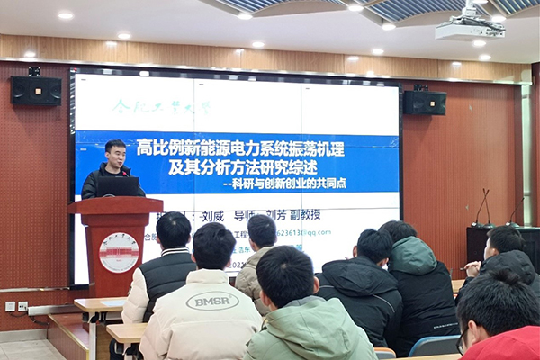 本次活动刘威同学从自己的《高比例新能源电力系统振荡机理及其分析方法研究综述》和《宽范围电网下并网逆变器延时小信号建模及不连续稳定区间分析》这两篇论文出发,首先向大家讲述了自己在论文中遇到的困难,以及自己是如何克服困难的宝贵经验。其次,刘威同学又向大家介绍了当前研究的热点话题,扩展了同学们的创新思维。最后,刘威同学结合自己的亲身经历,向大家描绘了对未来创新创业的憧憬,不仅营造了良好的创业氛围,还激发了同学们的创业热情。