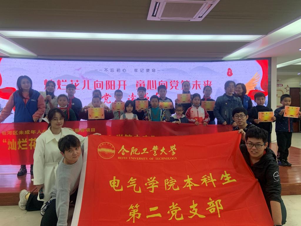 本科生第二党支部赴滨湖世纪社区服务中心开展“灿烂花儿向阳开,童心向党筑未来”读书会主题党日活动,以学党史,悟思想为核心,与小朋友们一道学习党的历史故事。