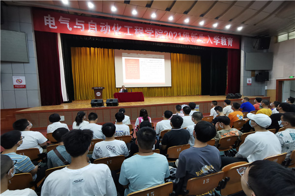 在斛兵礼堂电气学院开展“使命在肩,奋斗有我”2021级新生入学教育系列活动(一)——青年的历史使命与责任担当党史教育主题讲座,并邀请我校马克思主义学院陈殿林教授主讲。
