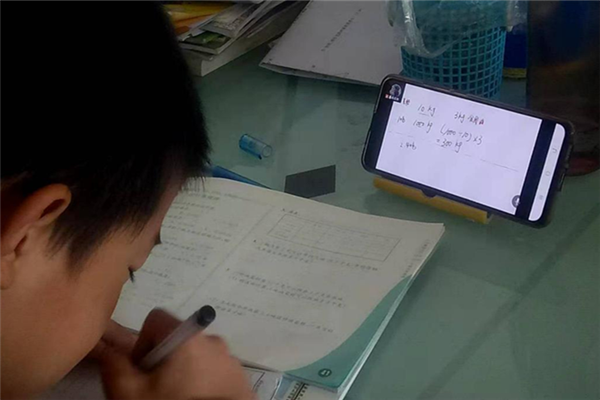 为了做好这次志愿活动,真正的帮到小朋友们,志愿者们开动自己聪明的大脑,花式线上授课。有的为方便讲课,用纸盒自制了手机支架;有的借用学校的教室以及黑板,进行线上教学;有的则使用腾讯会议软件,与小朋友进行连麦,更好的了解小朋友的学习情况。同时,我们开设了微信交流群,方便小朋友家长与志愿者进行实时沟通。
