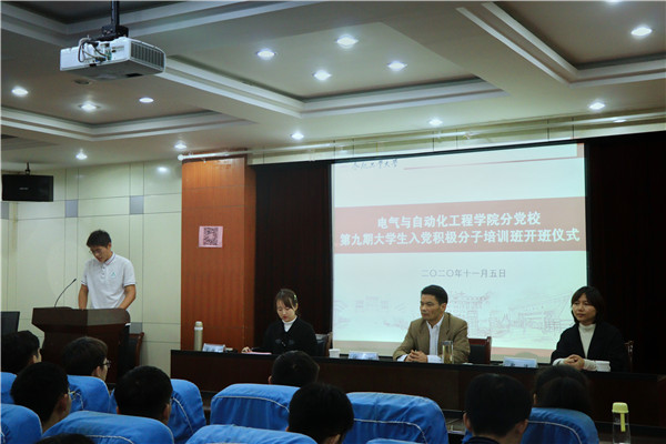 分党校第九期大学生入党积极分子班开班典礼在逸夫楼1117举行。院党委书记、分党校校长何岳颀和党委副书记兼纪委书记、分党校副校长郑洁出席了典礼。