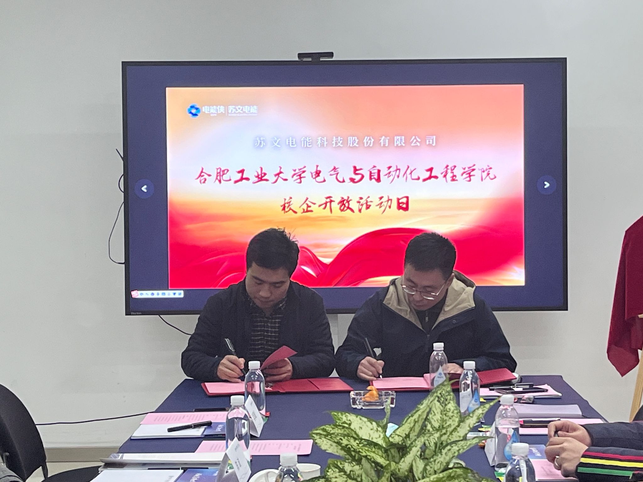 1月17日,学院教师一行前往苏文电能科技股份有限公司开展校企合作交流,苏文电能科技股份有限公司副总经理姜保光、设计总工李东辉、新能源事业部总监马智刚、产品经理俞庭人资总监符君、培训经理徐文媛、招聘经理金亚国与学院教师座谈交流。姜保光对学院教师一行来访表示热烈欢迎,他介绍了企业发展现状、主营业务、科技成果、荣誉资质、p站、人才培养等方面的情况,表示工大学子工程基础厚、工作作风实、创业能力强,在公司发展中贡献了突出力量,为企业高质量发展提供了新鲜活力,希望双方能够在人才招聘、实习实训、项目合作等方面加深合作,共同助力学生成长成才,助推企业发展再创辉煌,促进校企育人成果再创新高。黄海宏对苏文电能长期以来关心支持学院事业发展表示感谢,他从发展历程、师资力量、学生规模、学科布局、科研特色等方面介绍了学院的详细情况,希望双方在实习就业方面加深合作,在科研合作方面加强交流,企业结合发展难题出题,学院结合企业需求解题,解决实际困难,促进技术发展,打造校企合作品牌特色。随后,姜保光与李丽鹏签订共建p站