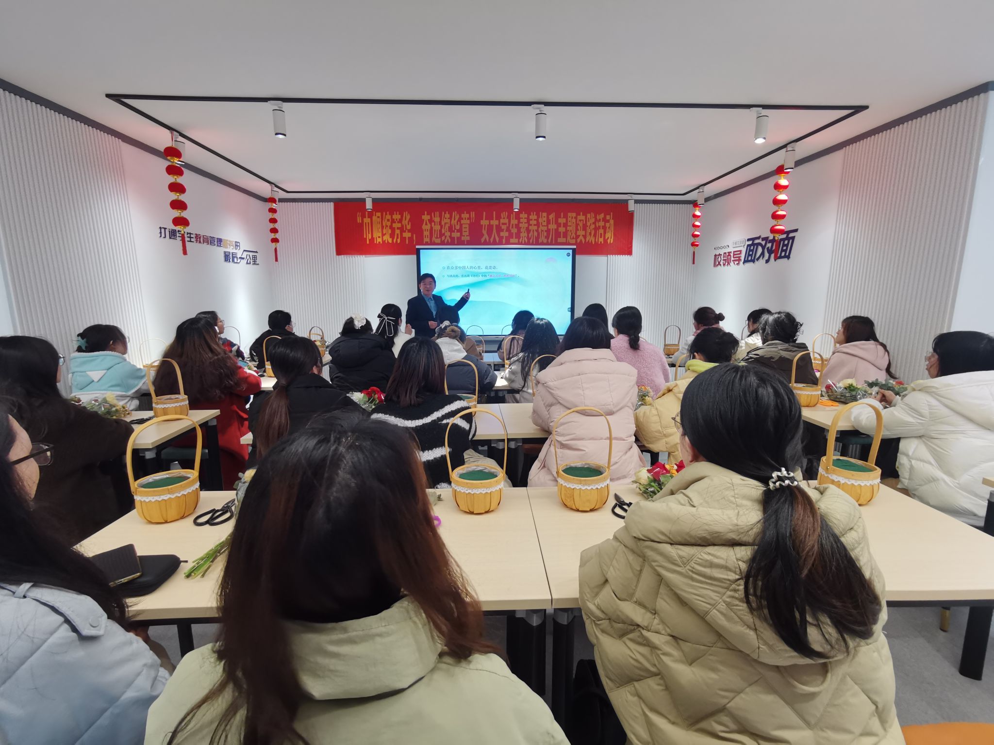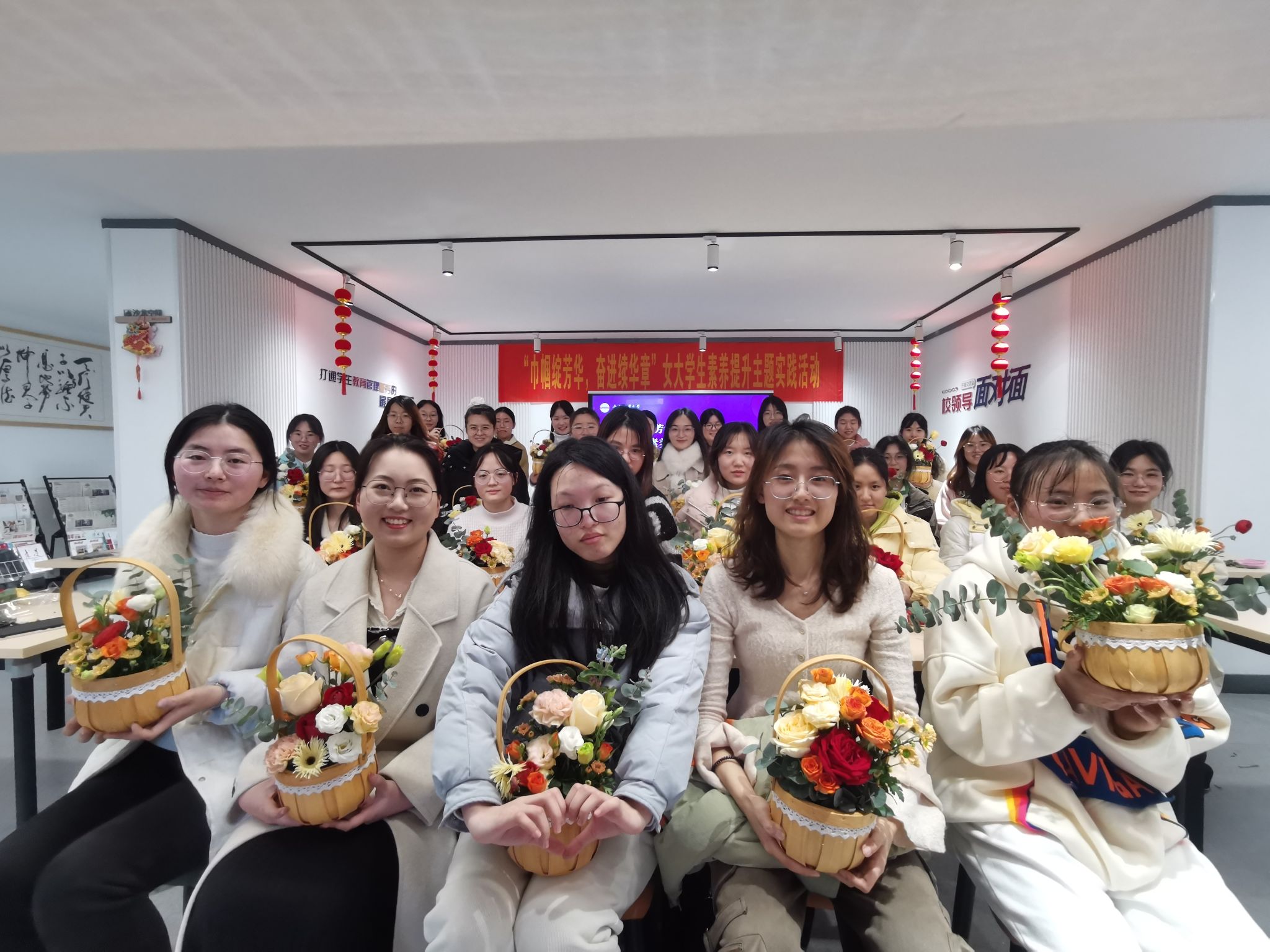 最后,同学们将自己亲手制作的花艺作品献给学院女教师,表达对老师授业解惑、培育桃李的感恩之情。本次“巾帼绽芳华,奋进续华章”主题实践活动涵养心灵、提升素养,凝聚“她”力量,助力“她”成长,激励“她”绽放,展现“她”风采,勉励女大学生成长成才,展现巾帼风采,绽放青春芳华。