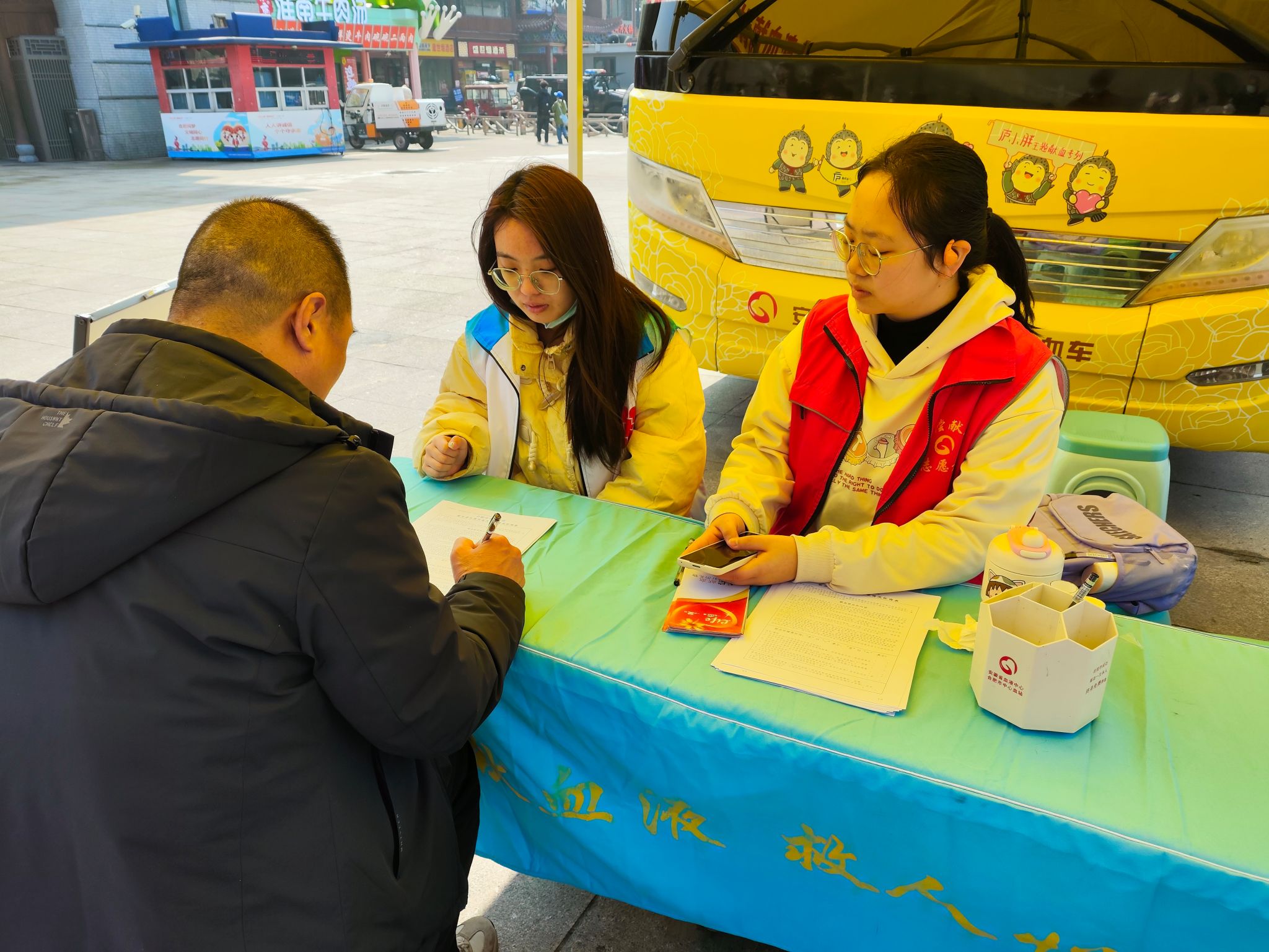 团结“熠”心,助力三献。3月10日上午,志愿者前往百盛献血站开展献血引导志愿服务,志愿者引导献血者有序填写相关表格,配合医务人员进行初步筛选,细心观察献血者的身体状况,询问相关病史,确保每一位献血者都符合献血条件。献血结束后志愿者为献血者科普献血知识和注意事项,并对他们支持三献事业表示衷心感谢。