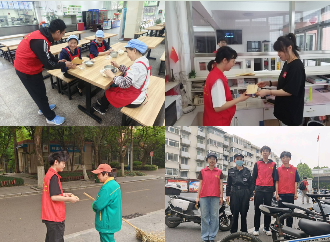 致敬辛勤身影,感恩劳动付出。五月草木繁华,花儿娇艳,在这个属于广大劳动者的节日里,还有一些人依然坚守在一线岗位,他们劳动的身影,是我们镜头中最美的风景。每一份努力都值得被尊重与肯定,时间长河中,无数劳动者以智慧为线,用勤劳的双手,编织了这个五彩斑斓的世界,创造了伟大先进的文明。节日当天,学院组织本科生第一党支部与第四党支部的32位入党积极分子将感激之情化作文字,通过一份份小小的慰问贺卡,为劳动者们送上祝福,向坚守岗位的平凡劳动者致敬。这次活动不仅让同学们体验到不同工作岗位的不易与艰辛,表达对校园里工作人员的感谢,也是一次党性教育实践活动,让学院入党积极分子在实际行动中践行共产党员的初心和使命。