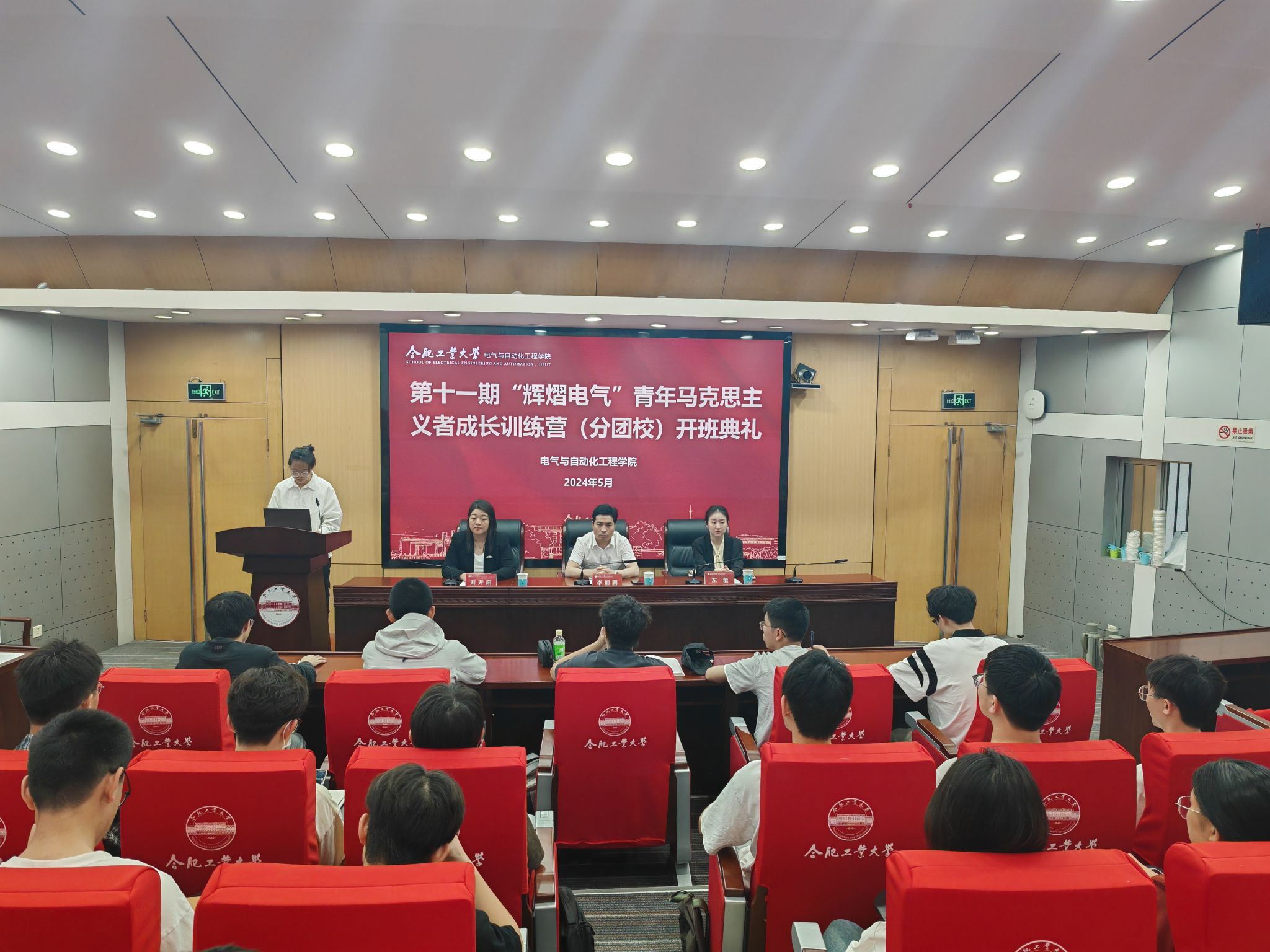 第十一期“辉熠电气”青年马克思主义者成长训练营(分团校)的决定》,学生工作办公室副主任兼团委副书记左能宣读本期训练营培养方案,学院分团校班主任齐梦月宣读训练营学员纪律要求。2023级自动化专业杜欣霏同学代表全体学员发言,谈到国家的希望在青年,民族的未来在青年,中华民族伟大复兴的中国梦终将在一代代青年的接力奋斗中变为现实,作为新时代青年,将在青春的赛道上奋力奔跑,用青春的加速度和创造力激荡起民族复兴的澎湃春潮,把青春的智慧和汗水撒进第二个波澜壮阔的百年目标。