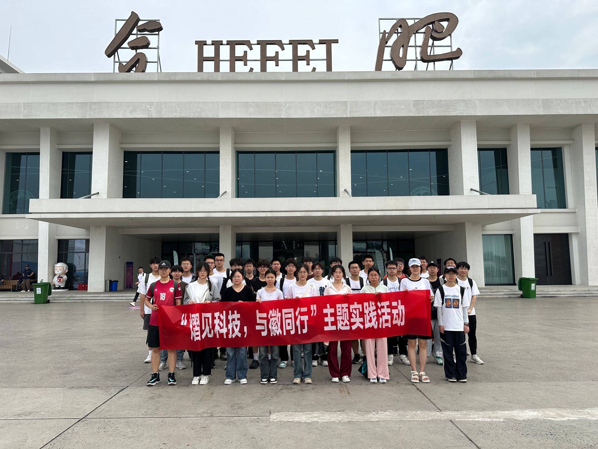 第十一期“辉熠电气”青年马克思主义者成长训练营学员及学院部分受助学生赴骆岗中心公园开展“熠见科技,与徽同行”主题实践。