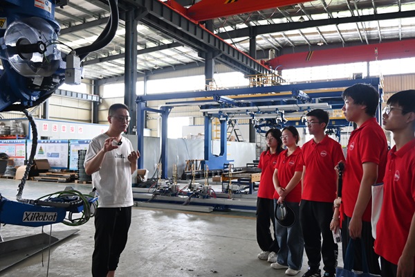 7月5日至9日,团队师生走进合肥中科深谷科技发展有限公司、芜湖清能德创电子技术有限公司、安徽行健智能制造装备股份有限公司和埃夫特智能装备股份有限公司,近距离观察了喷涂、焊接、码垛、搬运等各式各样的工业机器人与高效化、数字化的智能生产线,感受多元化机械设备和数字化未来的日新月异。在公司技术人员的讲解下,通过对比传统人力生产,团队成员深刻体会到科技赋能的强大力量,深入理解了机器人生产对解放人类生产力、提高生产效率的深刻意义,进一步坚定了同学们科技强国、工业报国的信念。