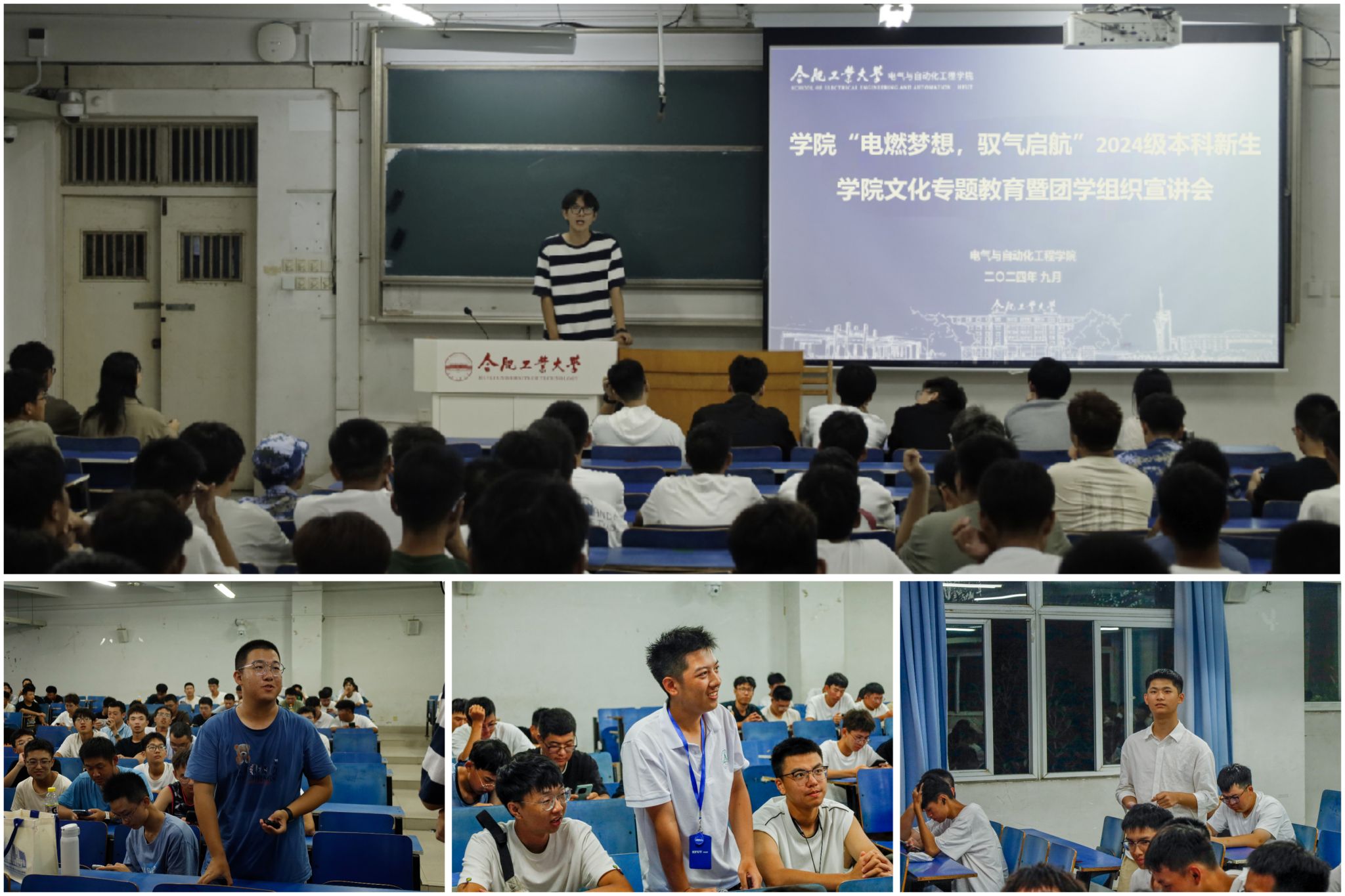 “电燃梦想,驭气启航”2024级本科新生学院文化专题教育暨团学组织宣讲会在西二教学楼202、302教室分批次开展,学院相关负责老师、学生团学组织相关负责人、全体新生参与本次活动。
