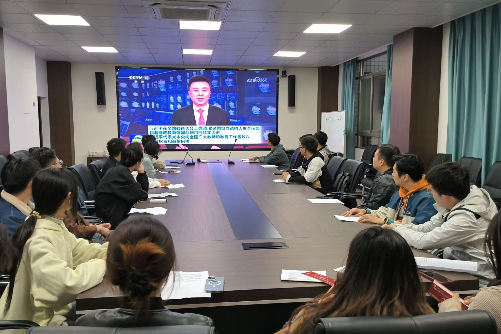 在逸夫楼1004会议室和五号楼社区沙龙活动室开展“立报国强国大志向、做挺膺担当奋斗者”主题教育活动,党校第72期发展对象班全体学员参与活动。