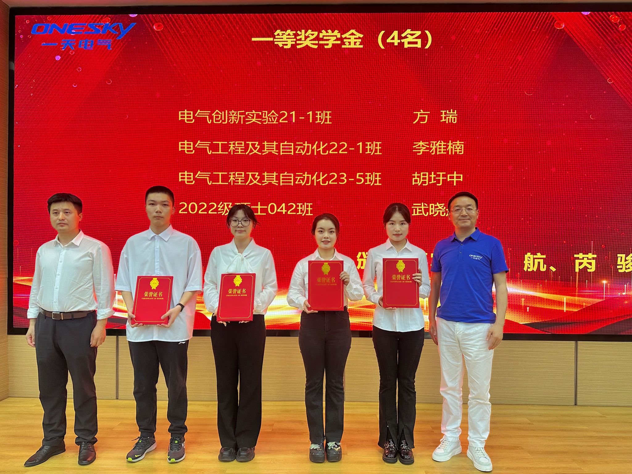 “一天电气奖学金”由安徽一天电气技术股份有限公司于2022年设立,连续四年,每年出资6万元,用以奖励p站