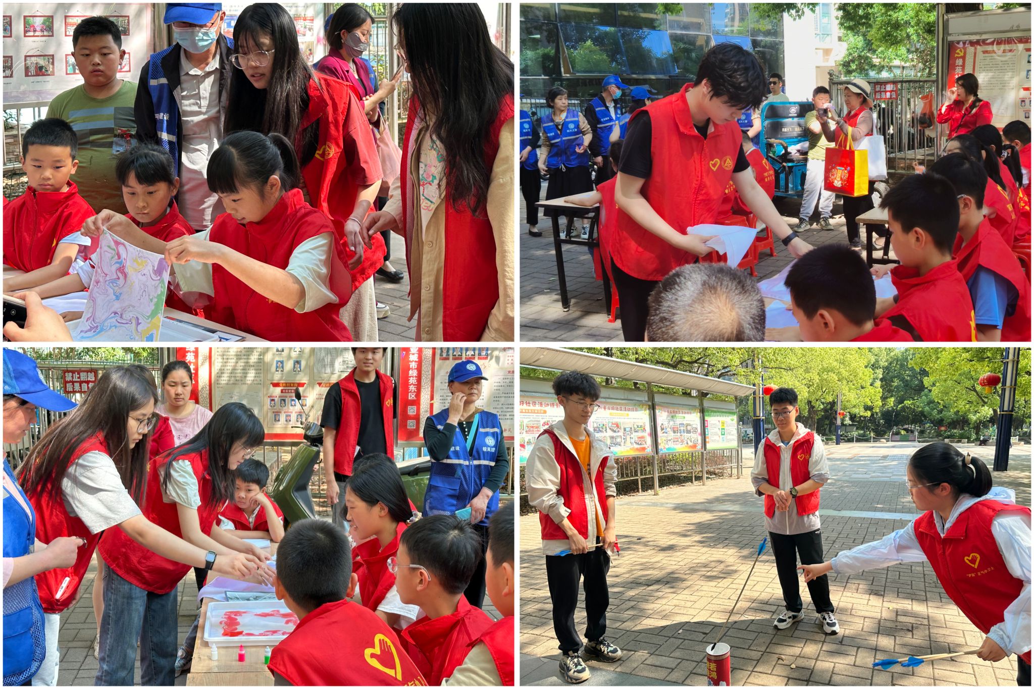 在趣味投壶与丝巾制作环节,学生向社区小朋友们讲解了相应规则,详细示范了丝巾制作的步骤,并分组指导小朋友们上色创作,引导他们以五彩斑斓的画笔为载体,点缀精心设计的祝福,绘下情由心生的爱意。大家巧妙运用爱心、笑脸等元素,将对母亲的爱融入到每一笔色彩中,用画笔制作独一无二的节日礼物。随后,小朋友们围坐在一起,开启了一场温馨的母亲节交流,从稍带腼腆到打开心扉再到踊跃发言,小朋友们纷纷用朴素的语言和日常小故事讲述着他们心中对母亲的真挚情感。
