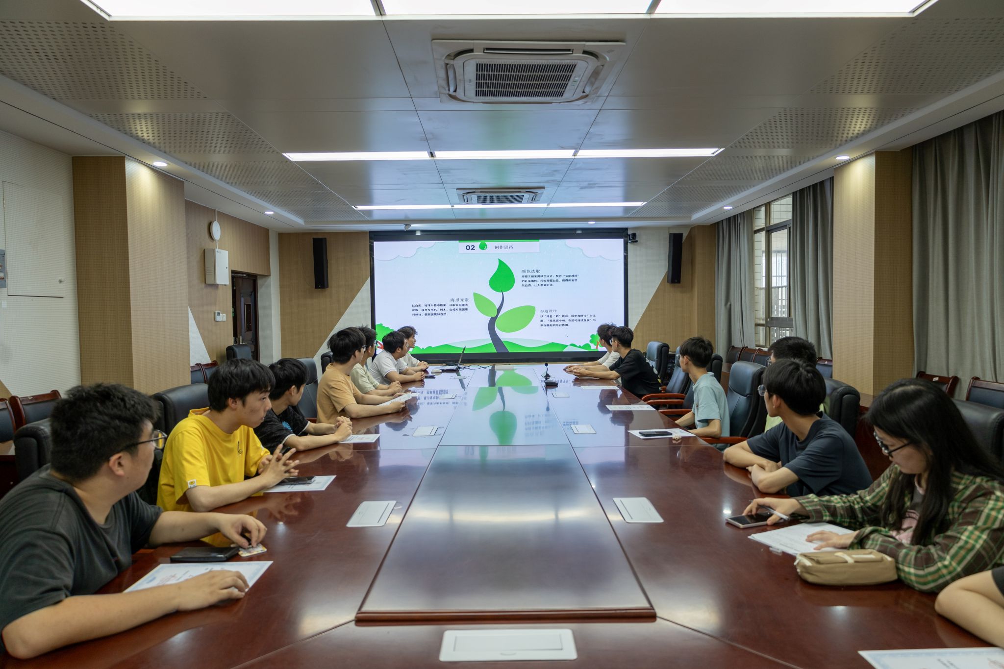 于逸夫楼1009会议室开展“光熠长明 碳循新章”节能减排主题海报设计大赛颁奖仪式暨优秀作品分享会,学院相关负责老师、获奖学生代表参加活动。