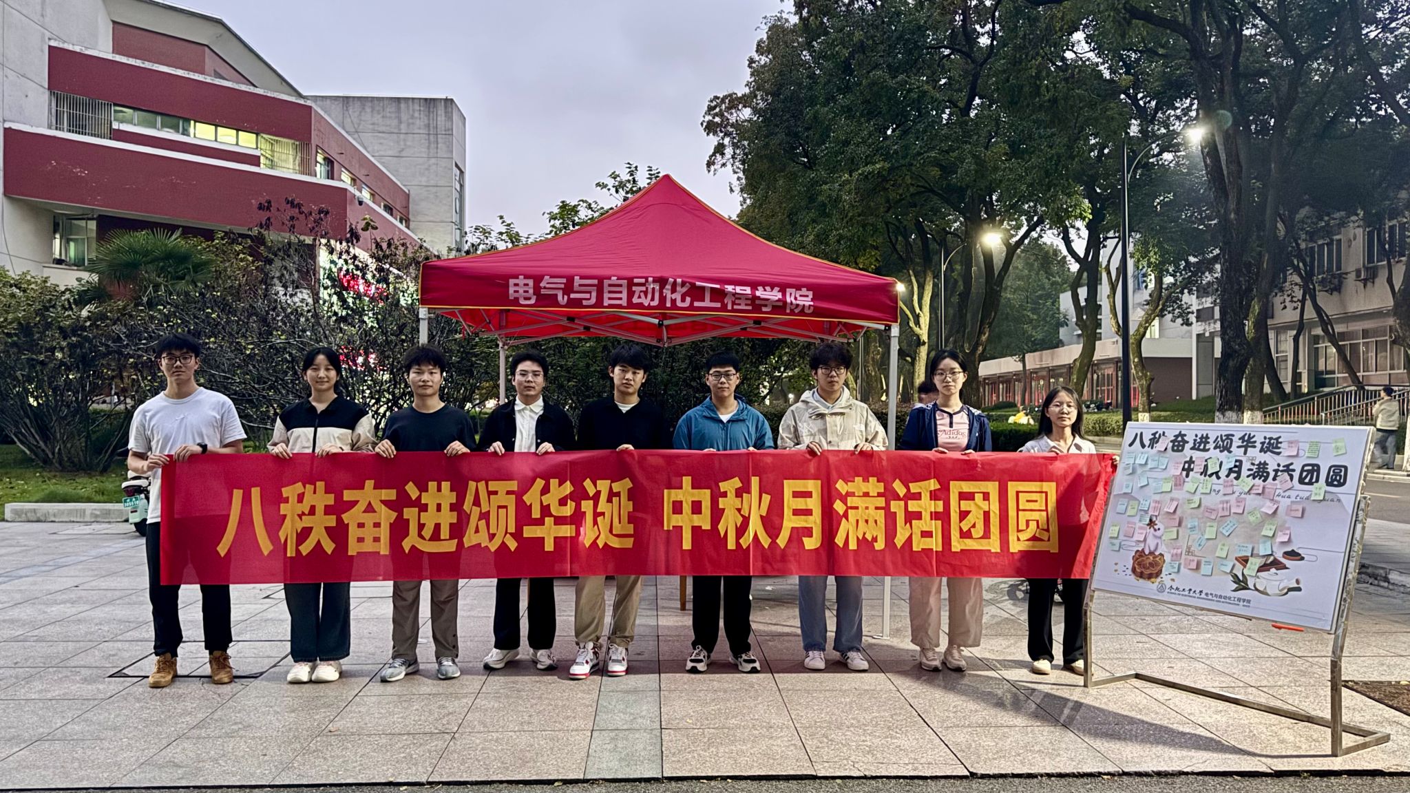 同学们还在校园内设立活动点,号召大家书写中秋诗词、勉励佳句或校庆祝福,在温馨互动中营造浓厚的节日氛围,传递积极力量,共享佳节喜悦,表达对学校八十华诞的美好祝愿。