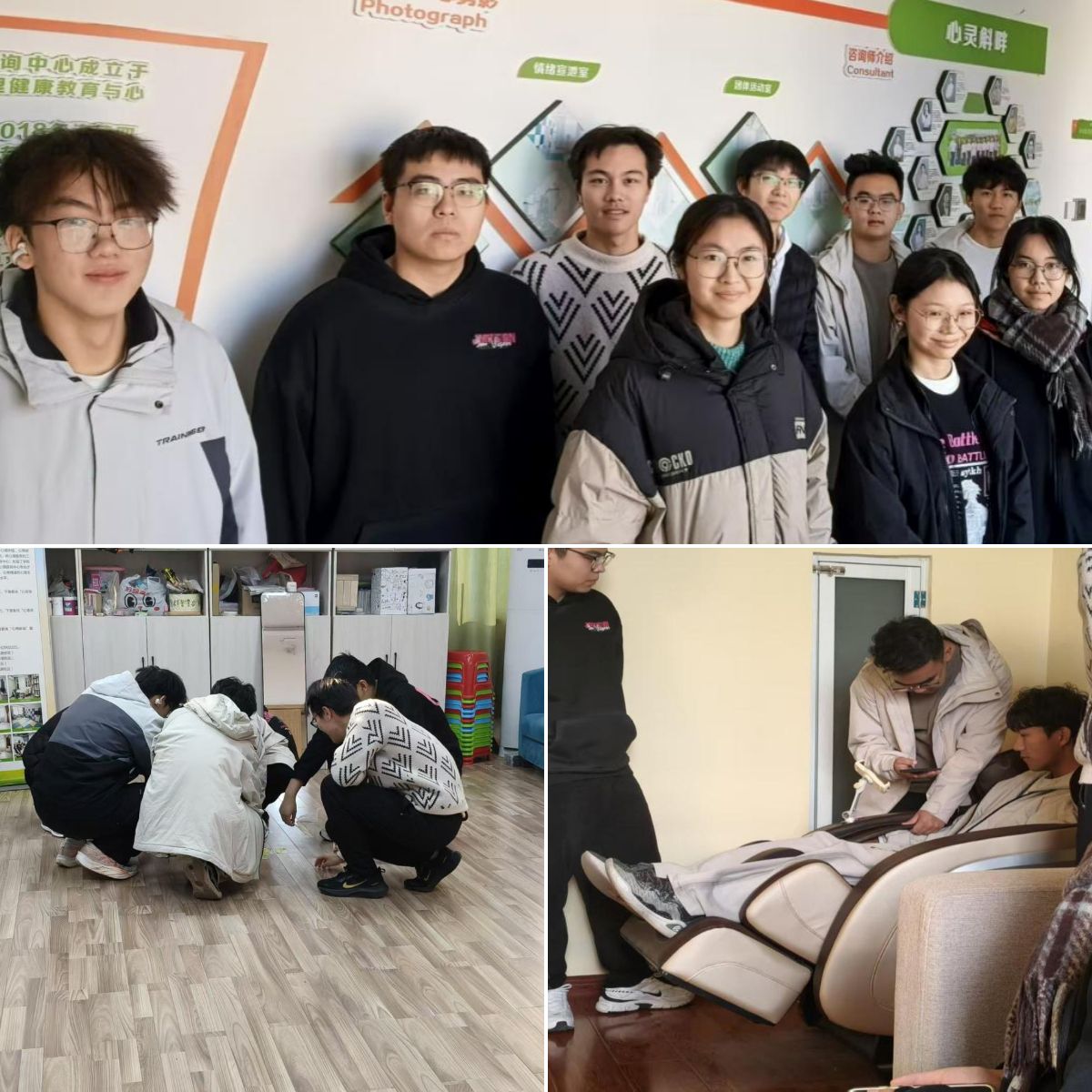 在模拟沙盘室,同学们自由摆放各类沙具,通过非语言的创作表达情绪,初步了解沙盘疗法在心理调适中的作用。智能宣泄室内,大家在老师指导下体验了呐喊宣泄仪、击打宣泄人等专业设备,学习在安全环境中科学释放情绪。团体辅导室中,灵活的空间布局与丰富的互动道具,让同学们直观感受到团体心理活动的形式与氛围。大家纷纷表示本次体验让自己对心理健康服务资源有了更直观的认知,也掌握了许多可落地的情绪疏导小技巧。