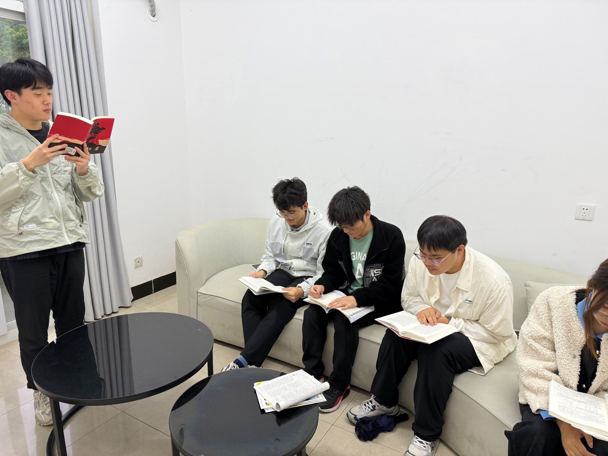 在经典诵读环节,全体成员齐声朗诵书中震撼人心的段落,以铿锵有力的声音传递革命先辈的不屈意志,让红色力量直抵人心。随后的交流研讨中,同学们围绕信仰力量、青春担当、家国情怀、时代价值展开深入对话,纷纷表示要以先烈为镜,把爱国情、强国志、报国行融入日常学习与成长实践。