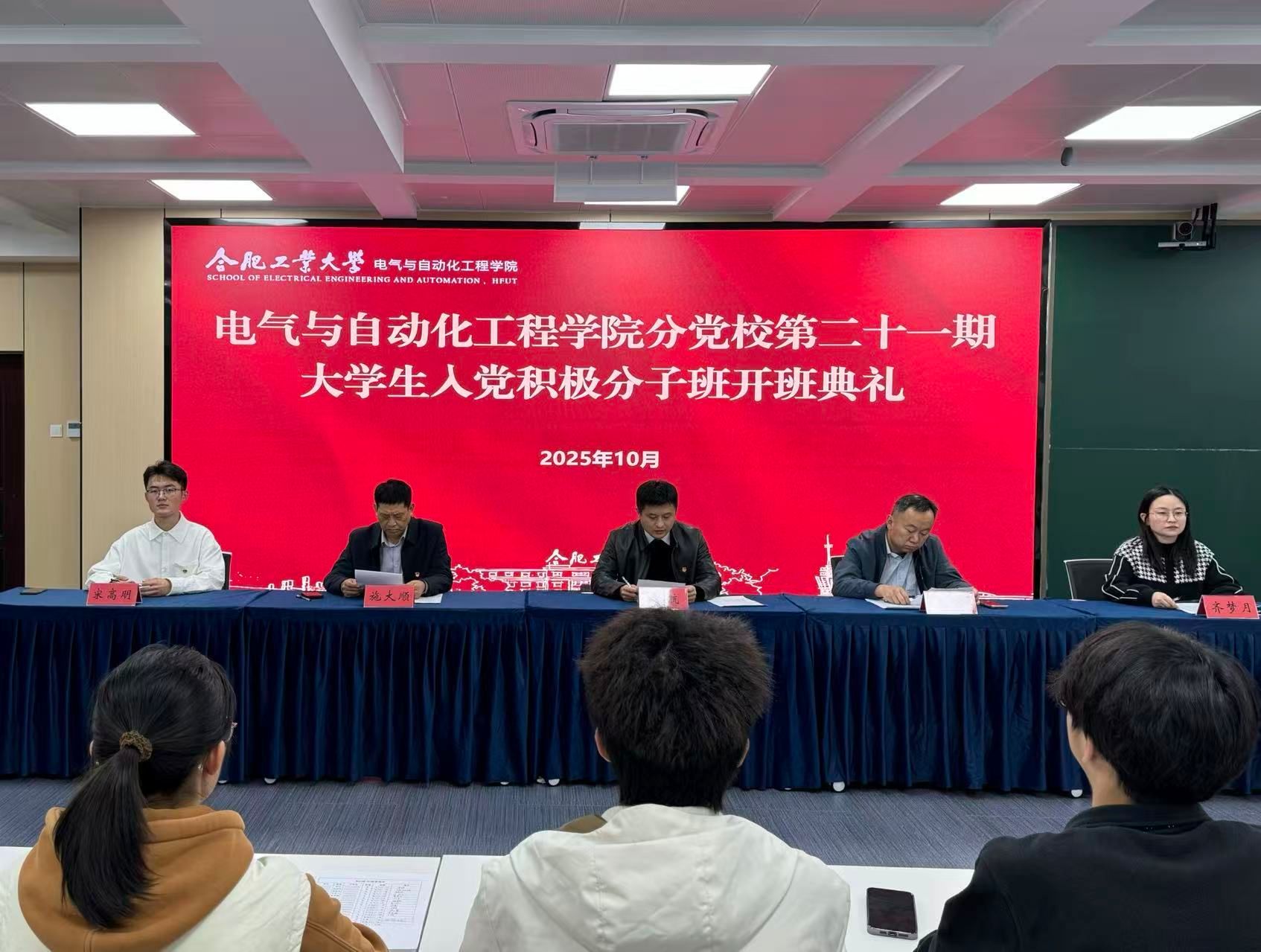 分党校第二十一期大学生入党积极分子班开班仪式暨第一次党课授课在逸夫科教楼1005会议室举行。学院党委相关负责同志及全体学员参会。